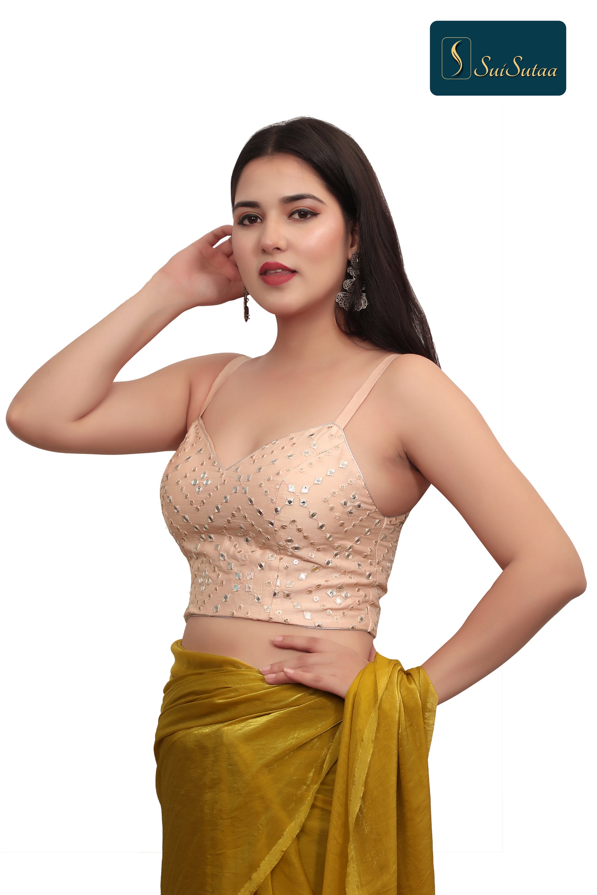 Redefine elegance with this stunning peach corset blouse crafted from premium Dupion Silk. Designed for a flattering fit, it combines modern sophistication with traditional charm, making it a versatile piece for multiple occasions. The structured corset style enhances the silhouette, while the soft silk fabric ensures comfort.