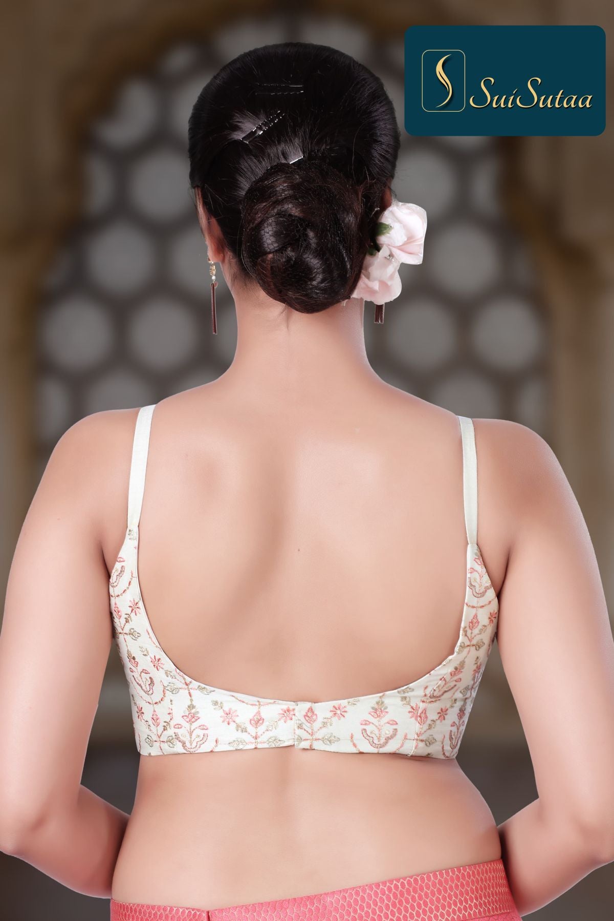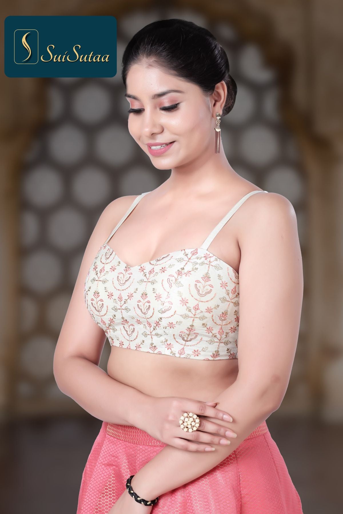 Description : Padded Blouse With Golden Butti Work With Piping