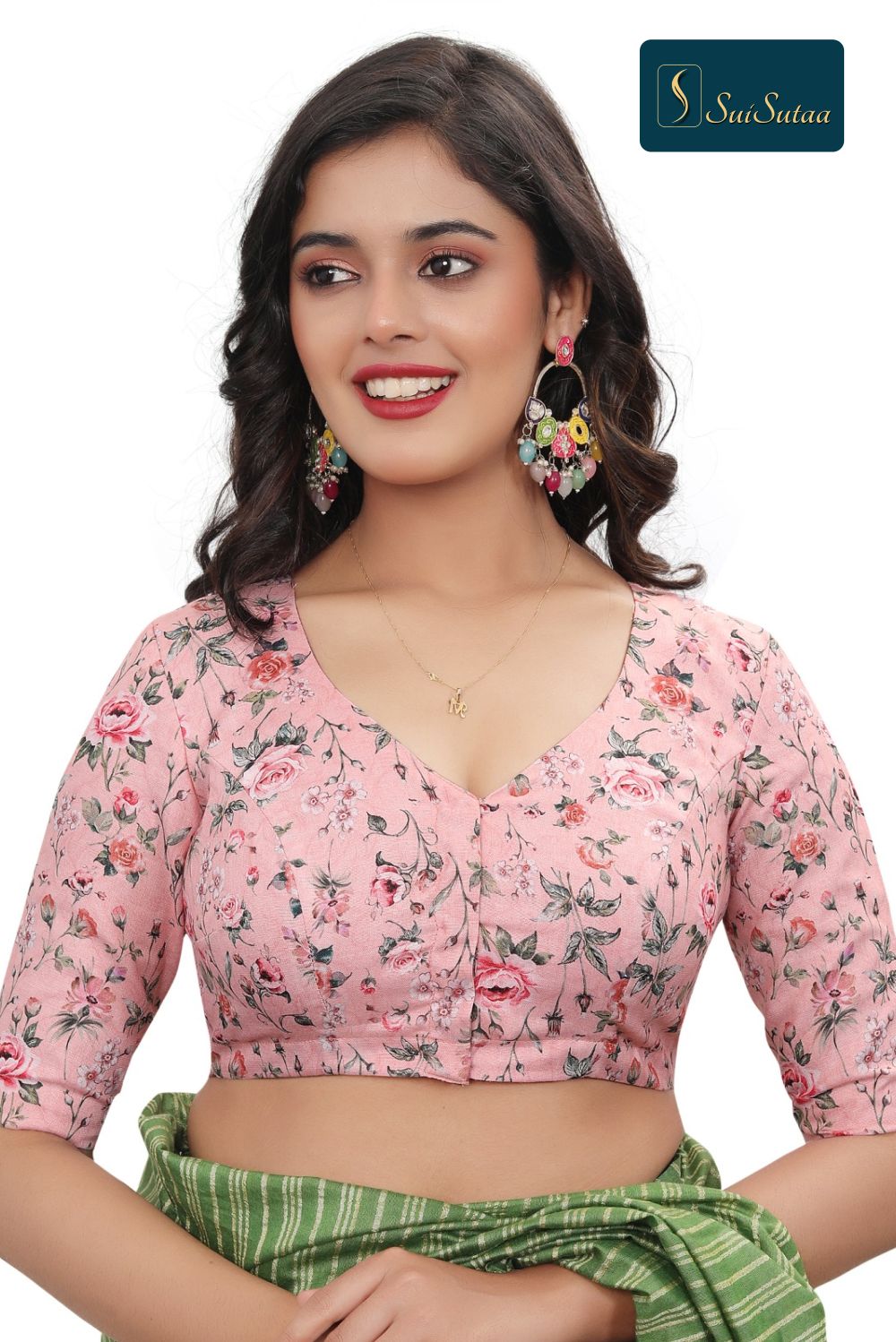 Add a touch of elegance to your ethnic collection with this charming peach cotton print blouse. Designed with elbow sleeves and crafted from lining printed fabric, it offers both comfort and a refined style perfect for any occasion.