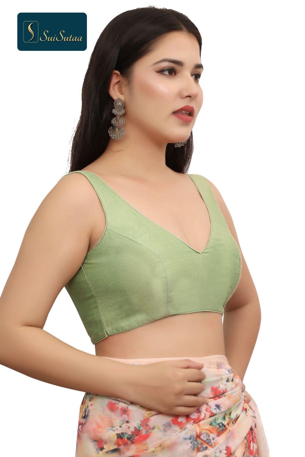 Bring a refreshing twist to your ethnic wardrobe with this pista green padded blouse, tailored in breathable cotton silk. Featuring self-color piping, this elegant piece balances comfort and sophistication — perfect for both festive and formal occasions.