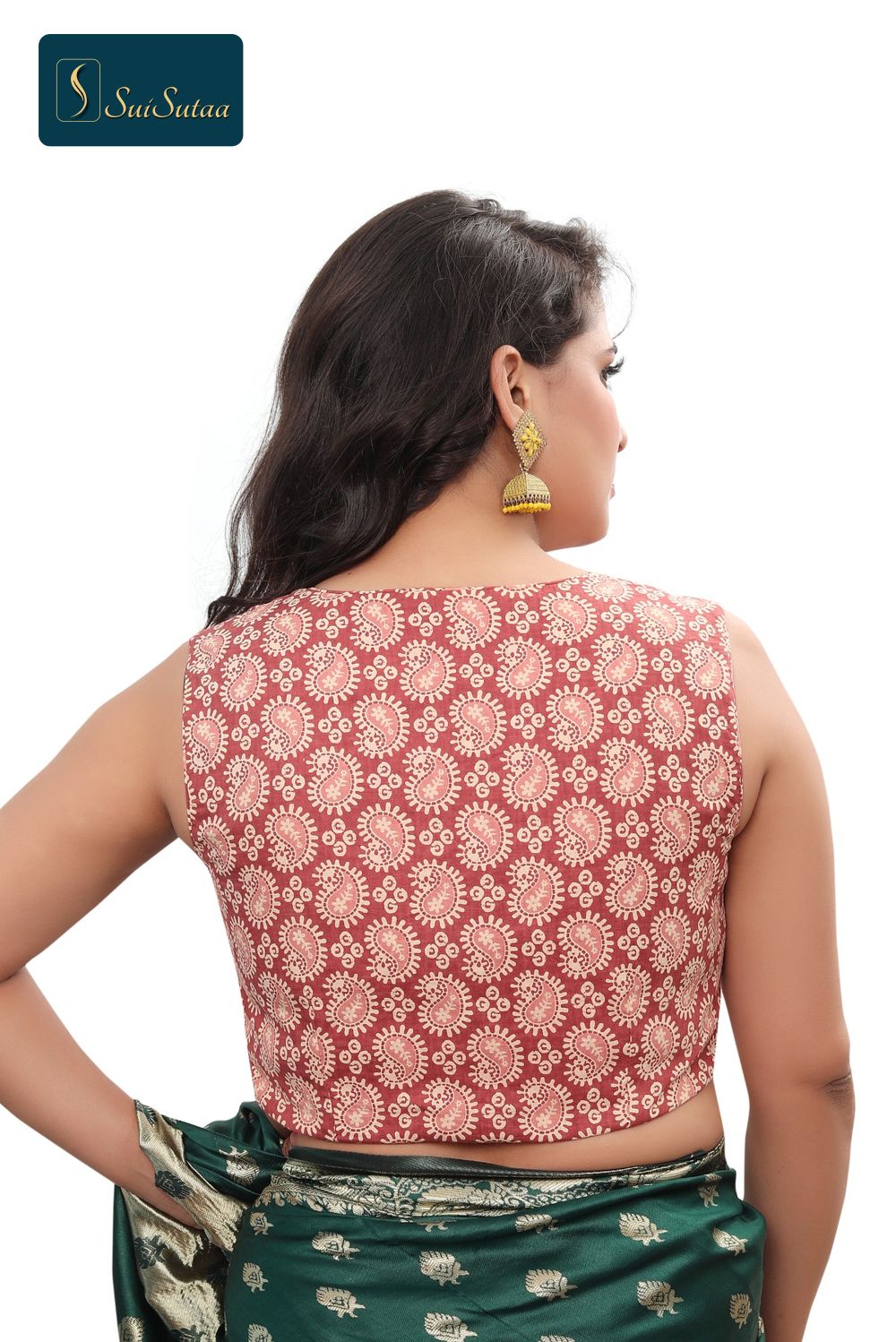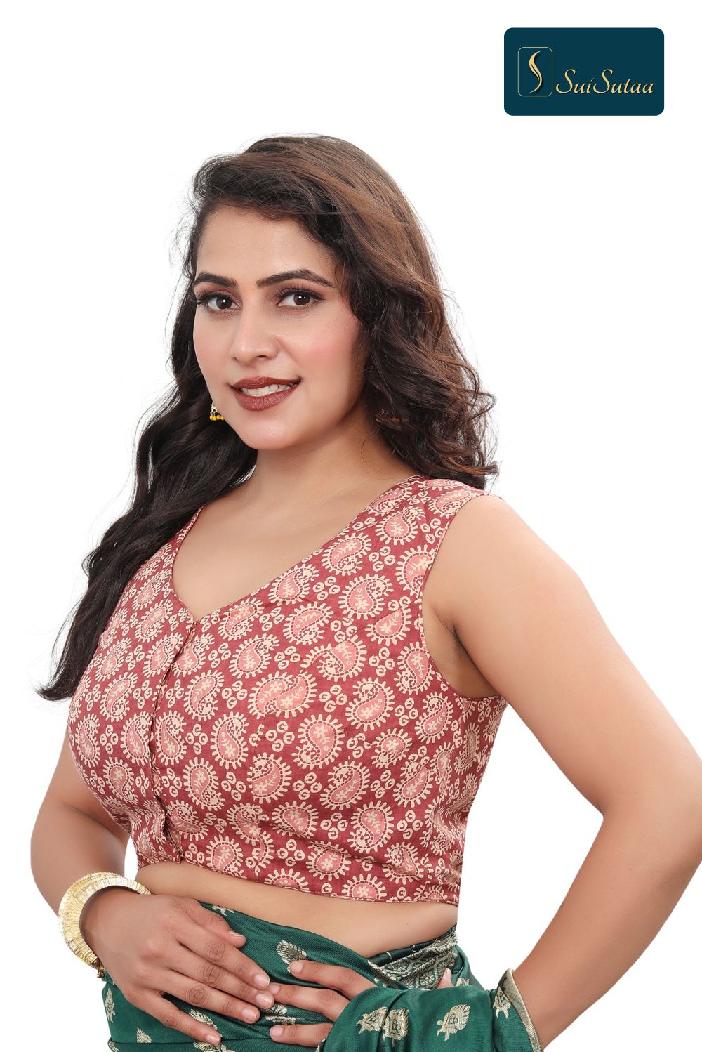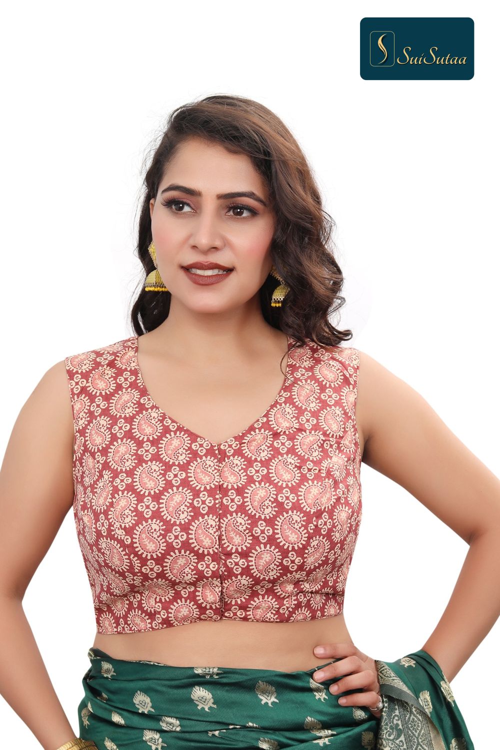 Bring elegance and comfort together with this pink cotton print sleeveless blouse, perfect for both casual and traditional occasions. Crafted with lining fabric and self-fabric piping, it ensures a refined finish and all-day comfort.