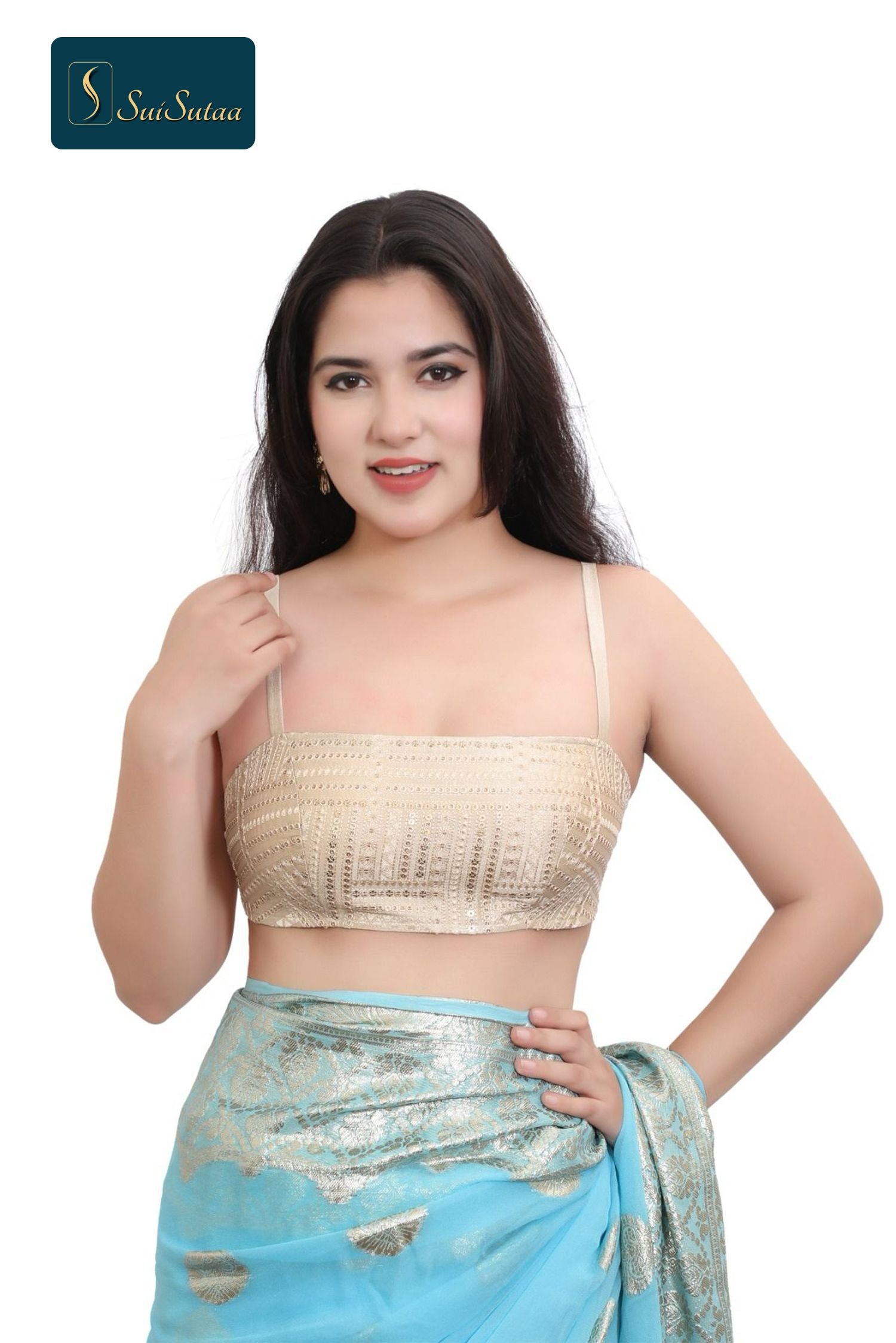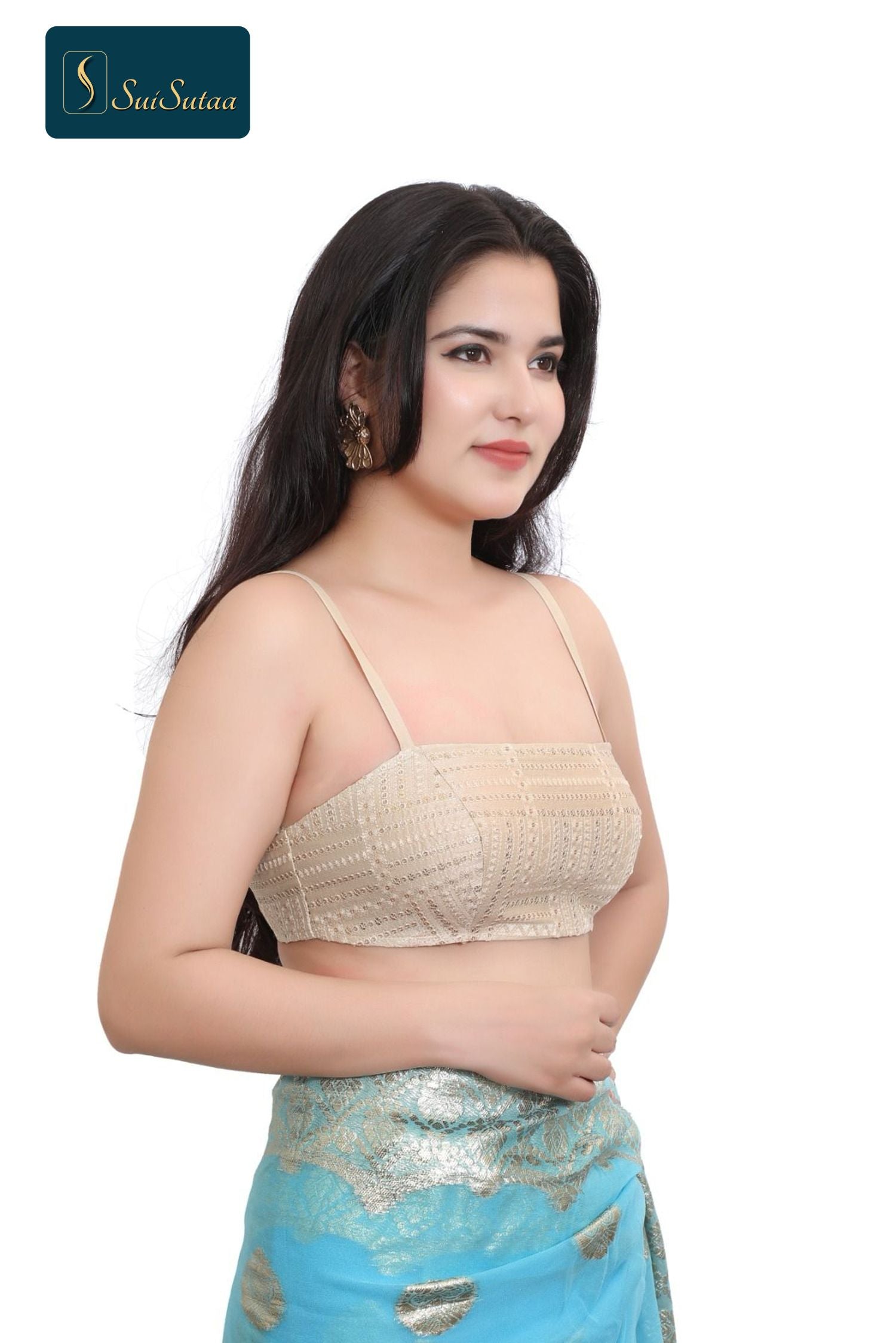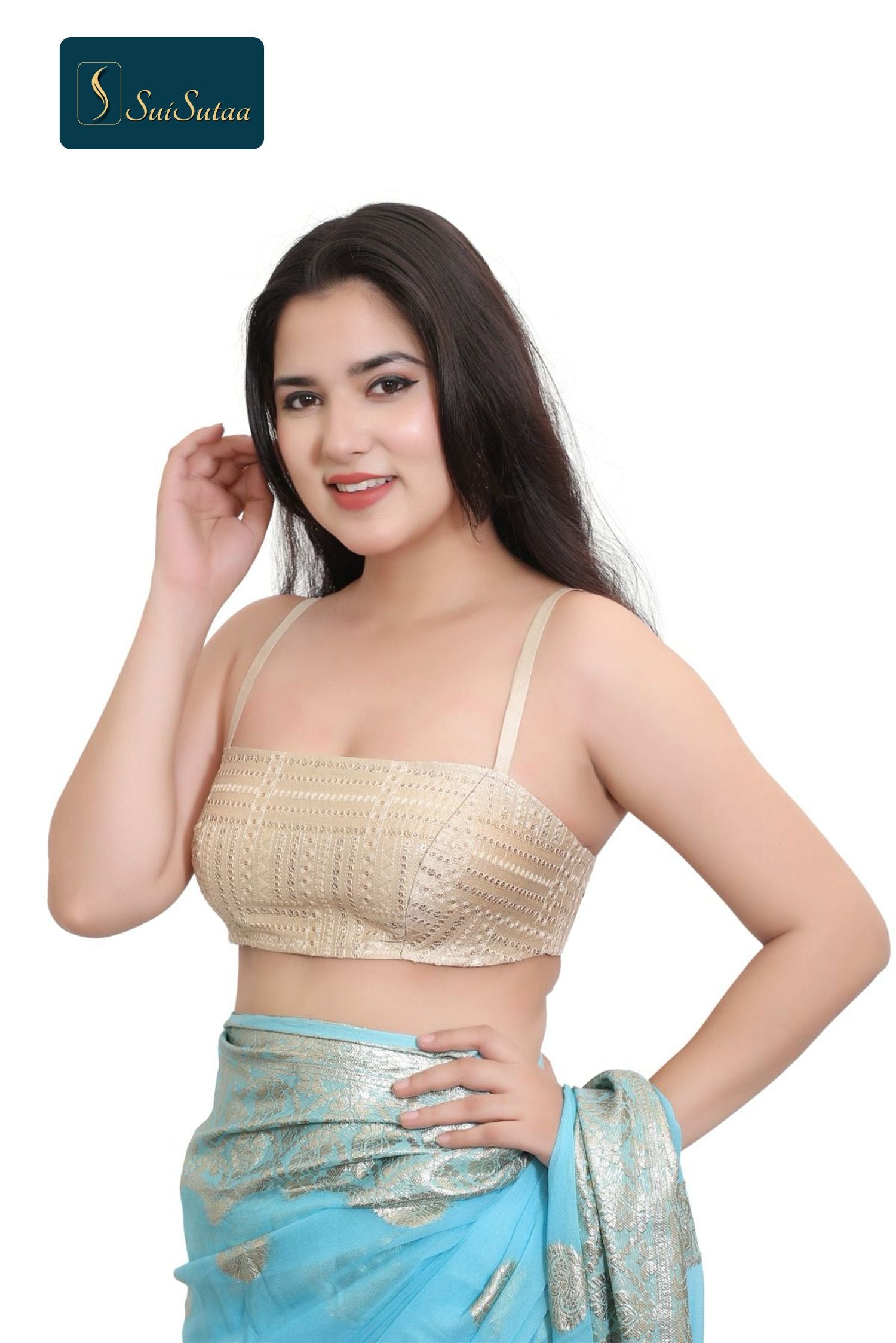 Enhance your ethnic wardrobe with our elegant Art Silk Spaghetti Blouse, featuring a sophisticated dark cream hue and delicate spaghetti straps for contemporary appeal.
