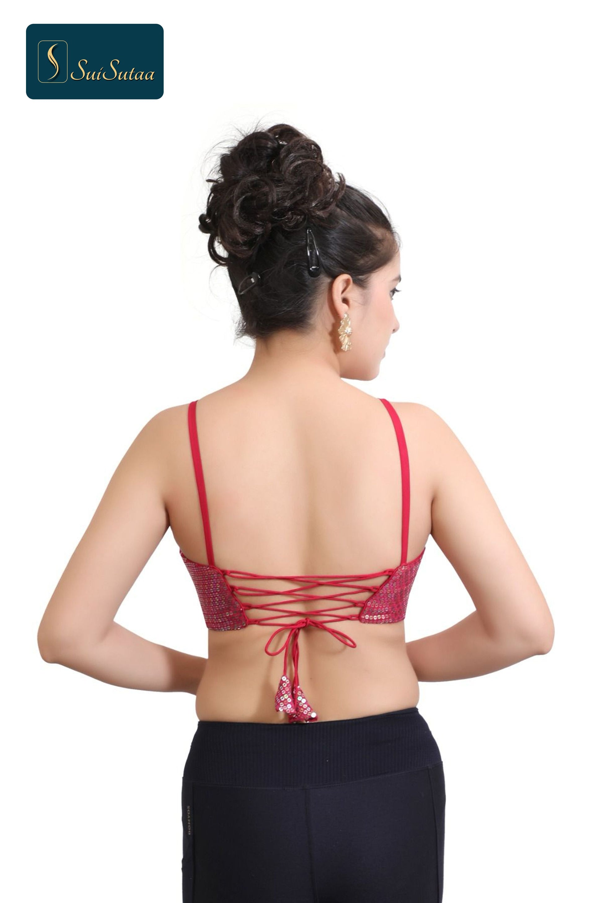 Description : Padded spaghetti straps blouse with sequence work, Back side dori