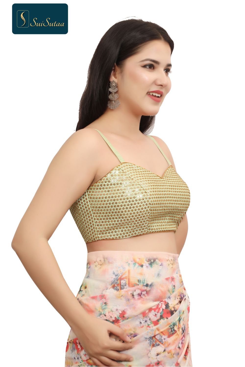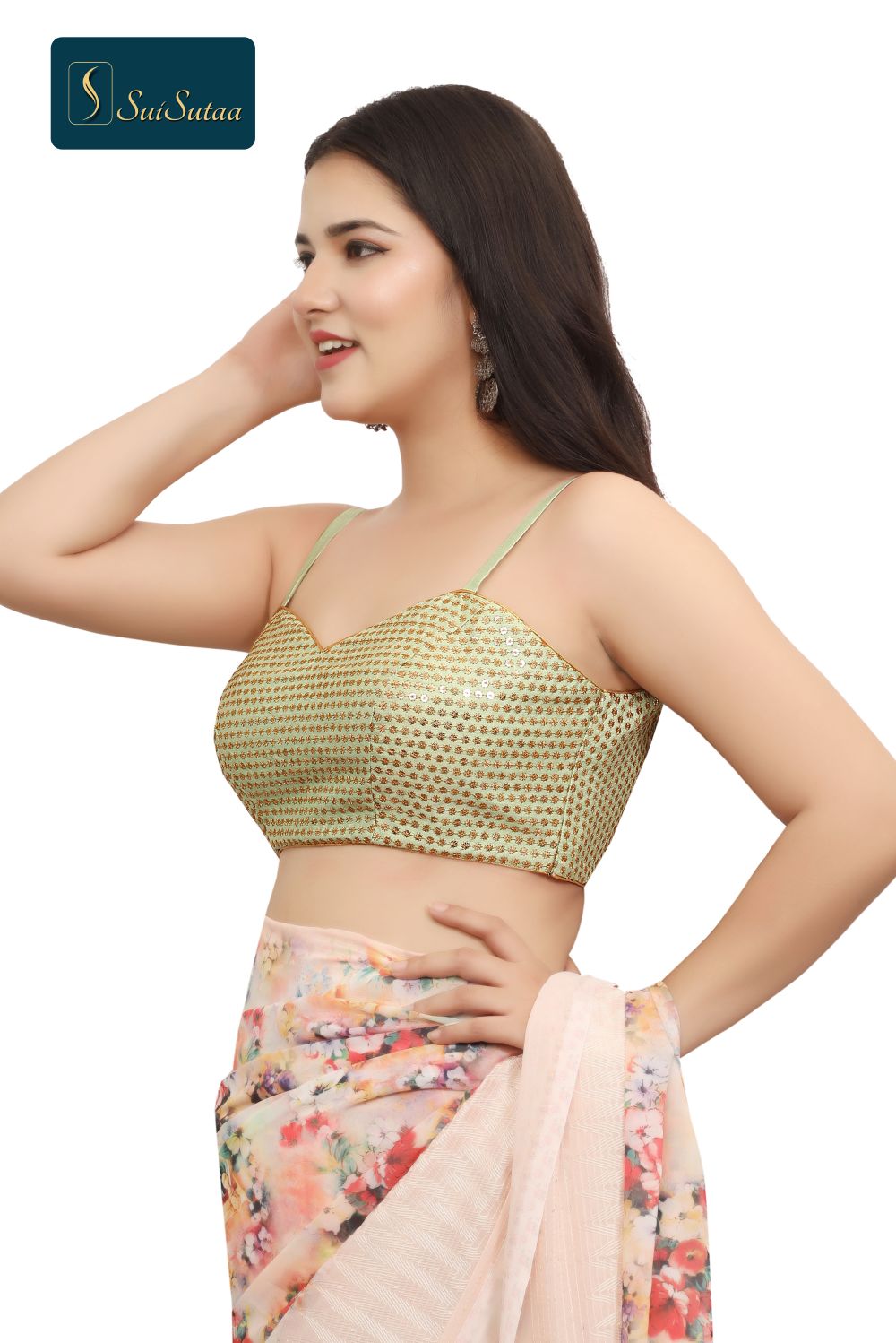 Indulge in timeless elegance with our Spaghetti Blouse, meticulously crafted from luxurious Art Raw Silk in a mesmerizing Green Gold hue. The delicate spaghetti straps and sweetheart neckline create a feminine silhouette, while subtle padding ensures a flattering fit. Perfect for special occasions or elevating your everyday style, this blouse exudes sophistication.