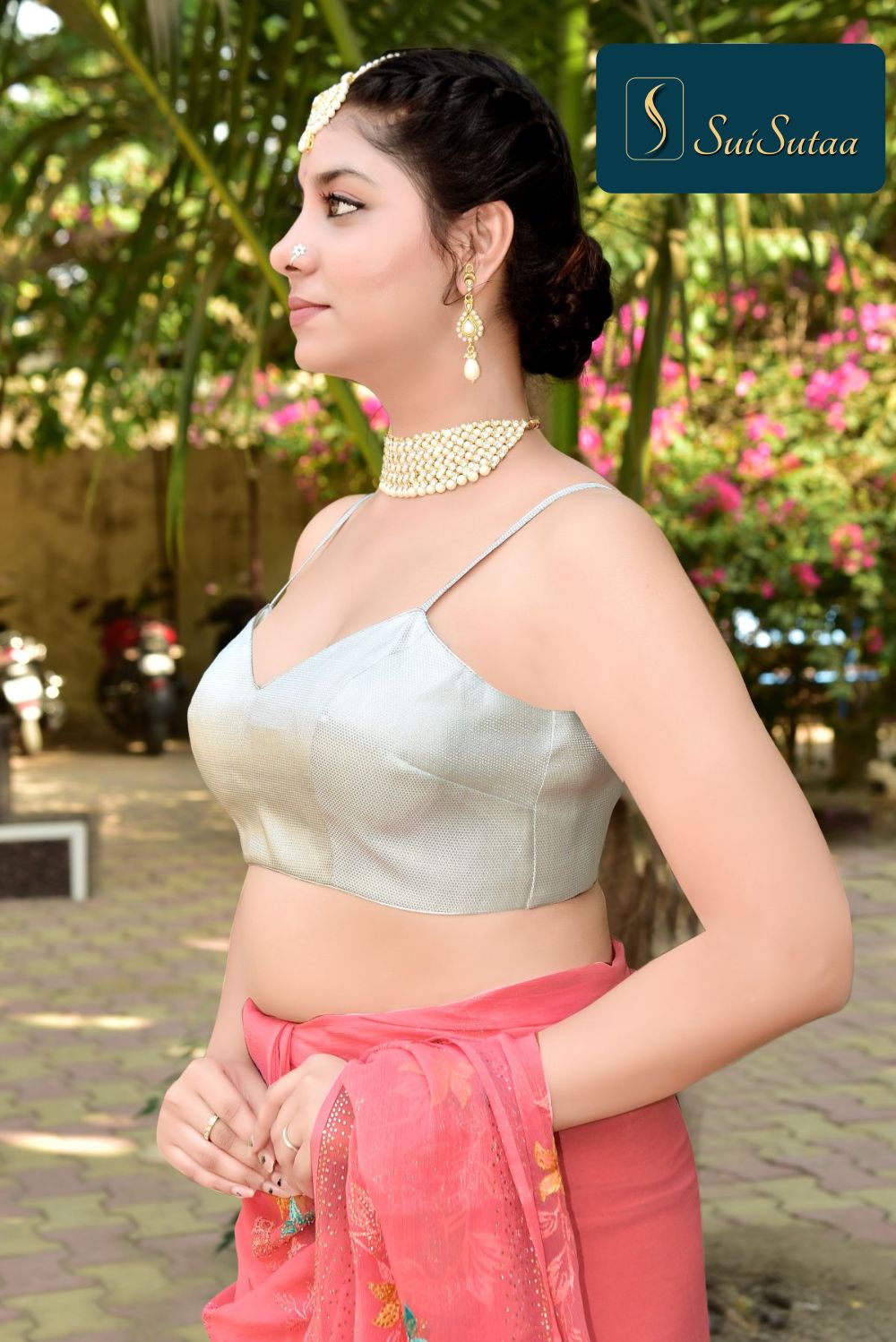 Lustrous Silver Brocade Blouse – Modern Ethnic Glamour