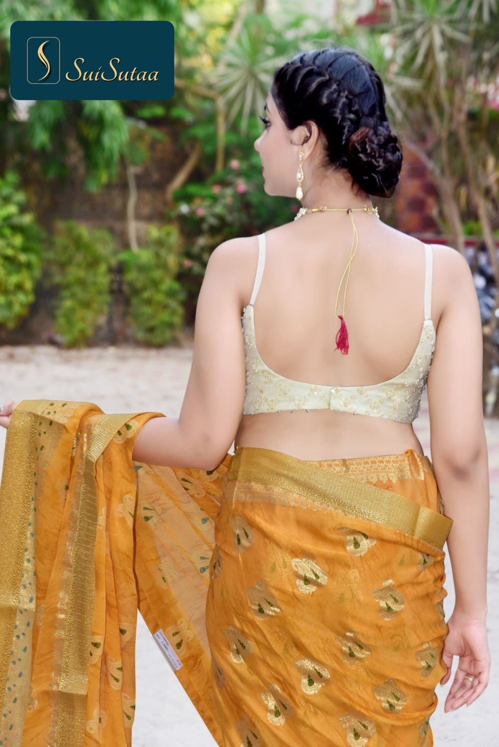 Sunshine Yellow Net Blouse – Playful Elegance with Traditional Charm