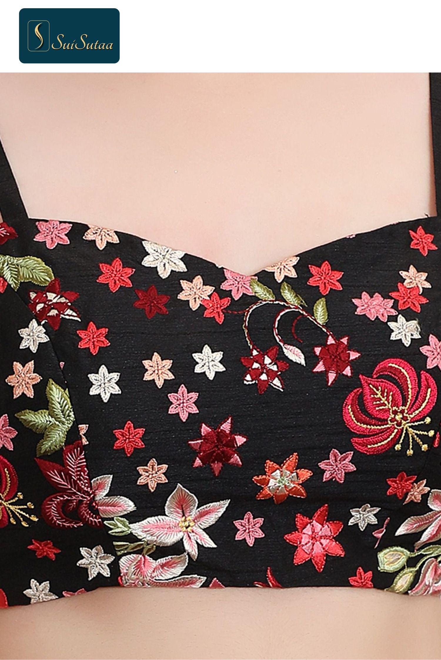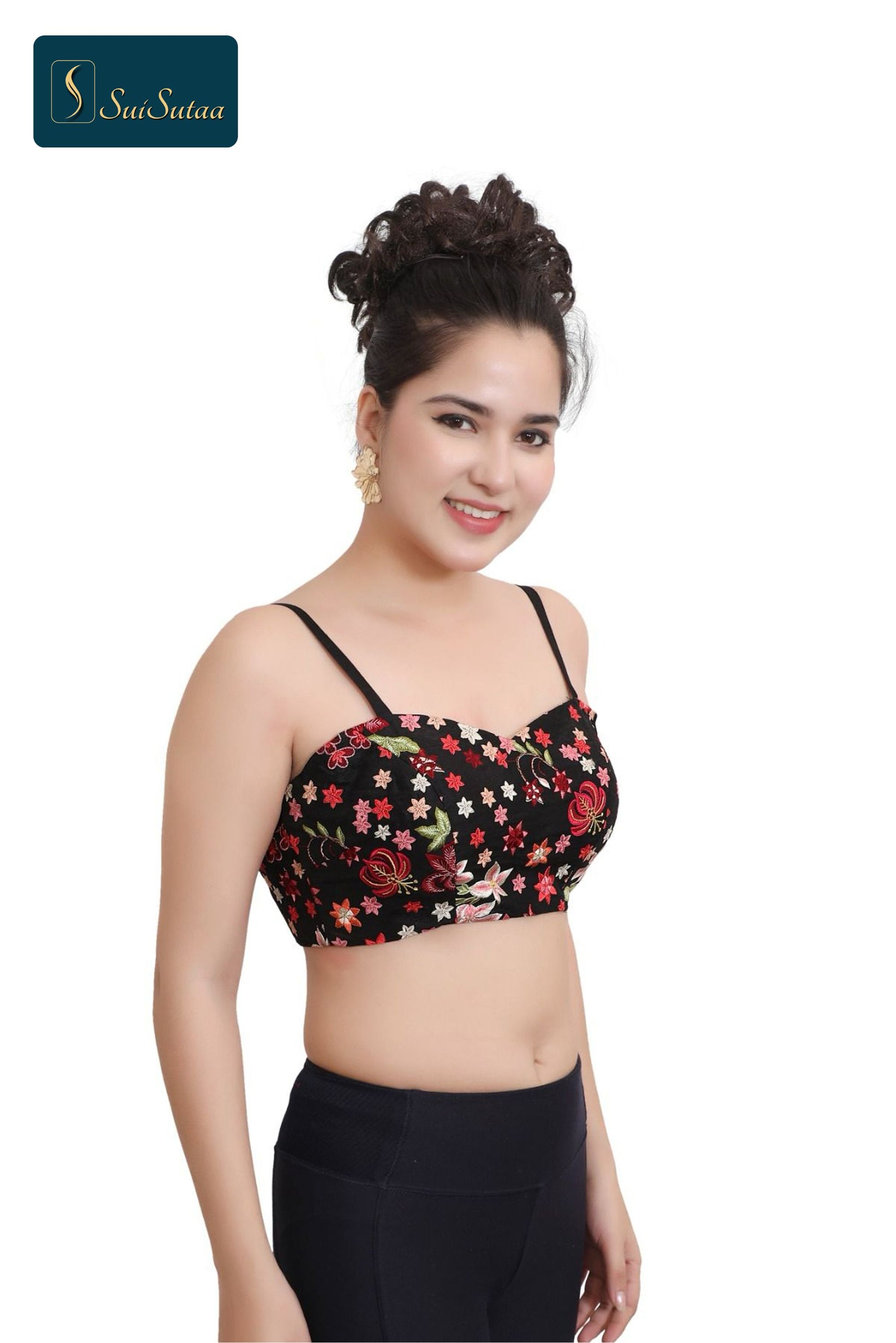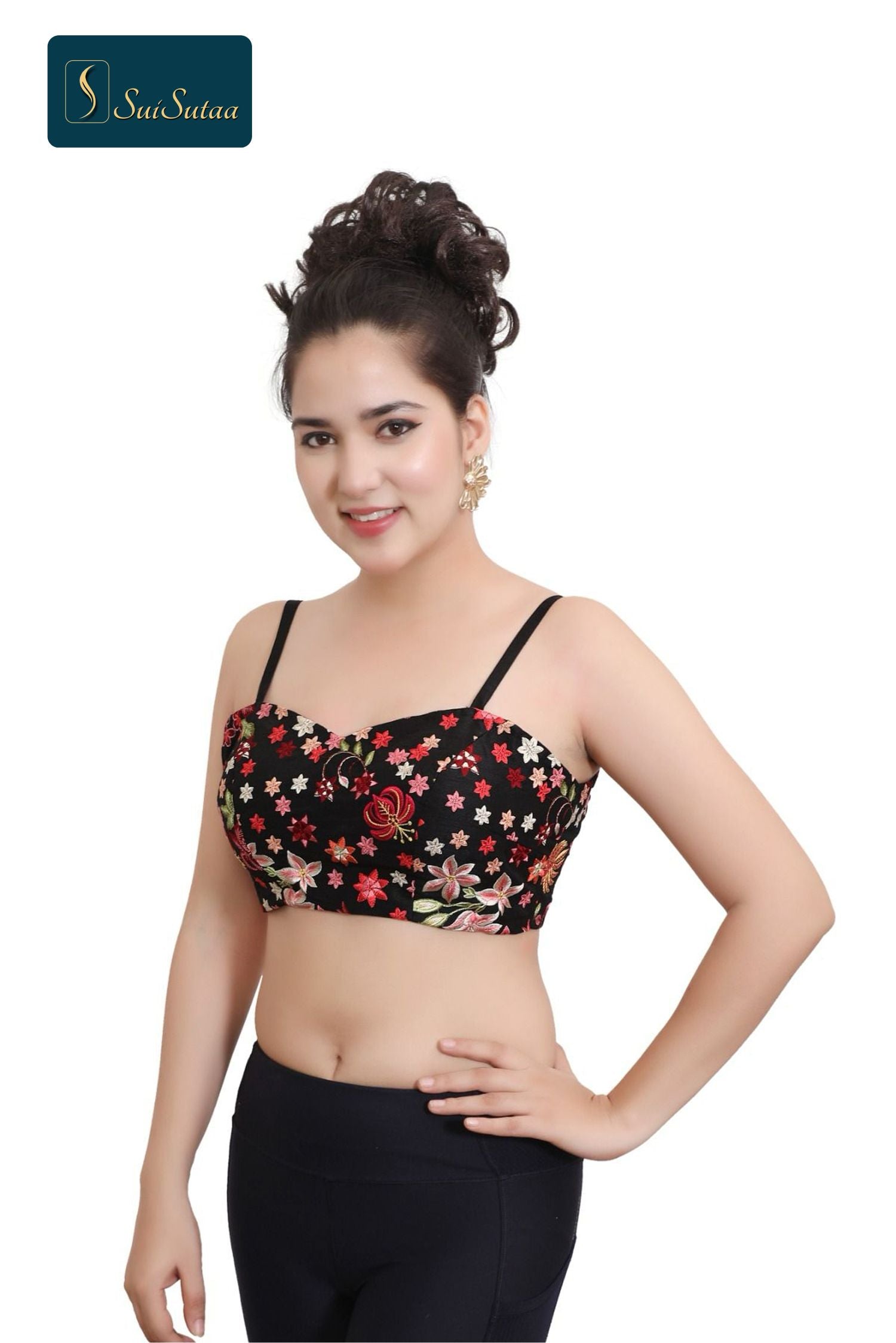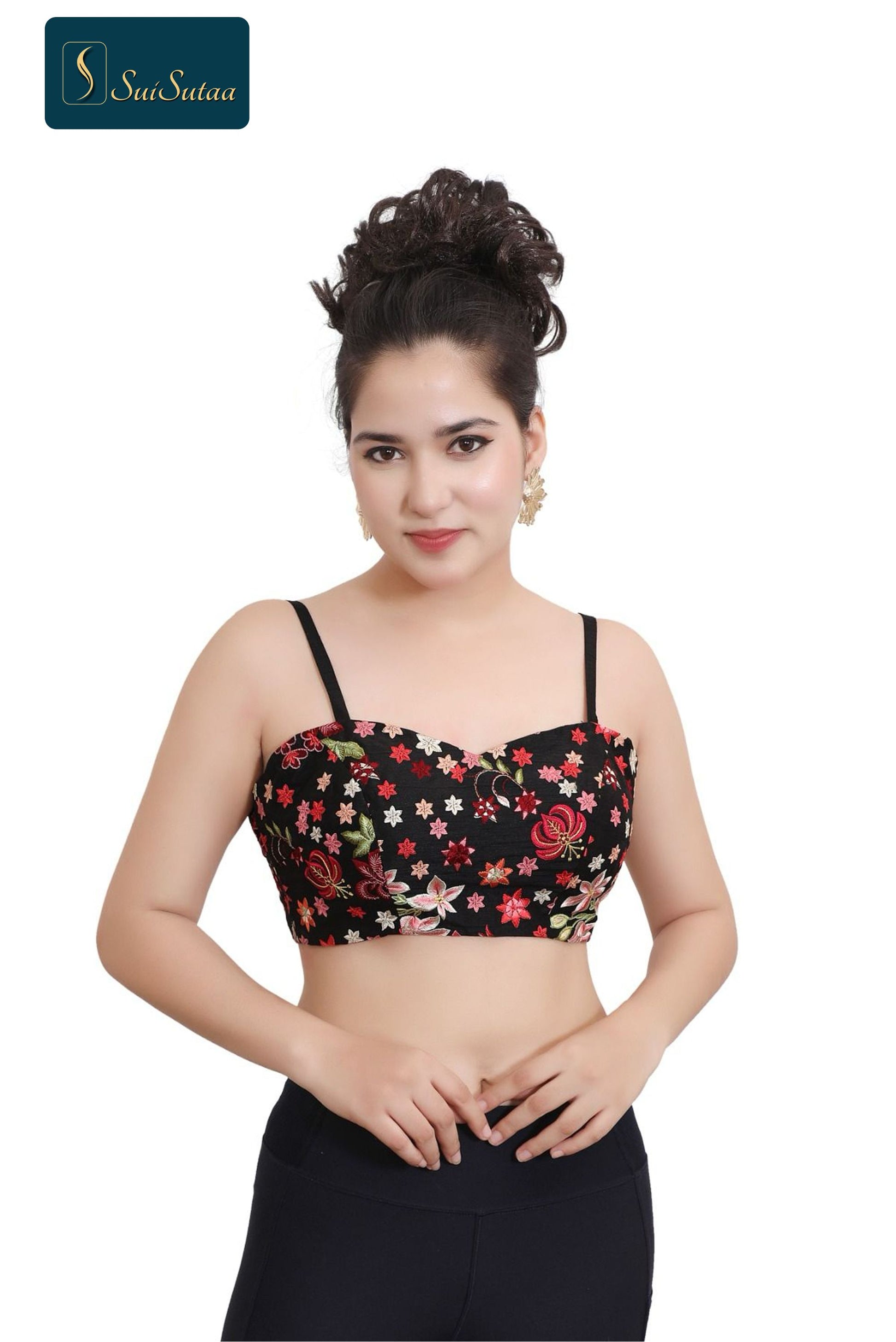 Add a vibrant touch to your ethnic wardrobe with our Art Silk Spaghetti Blouse, featuring a stunning multi-color floral print that brings effortless elegance to any traditional ensemble.